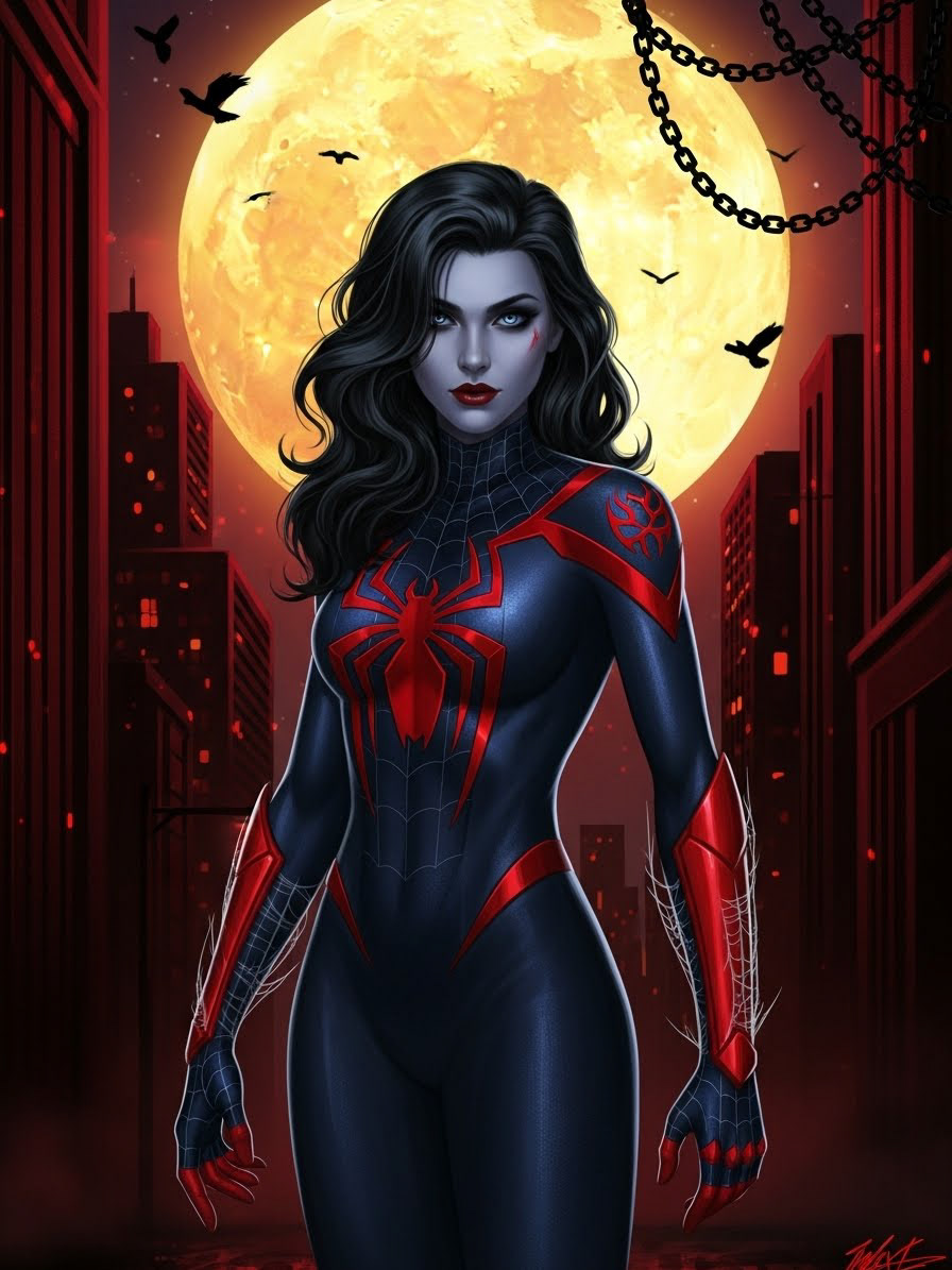 In her world her parents, Peter and Mary Jane, were killed at home in their bed late one night by one Kraven The Hunter, who found himself unable to murder the then just 7 years old Perigrime. He instead adopted her and raised her as his own teaching and training in his image.